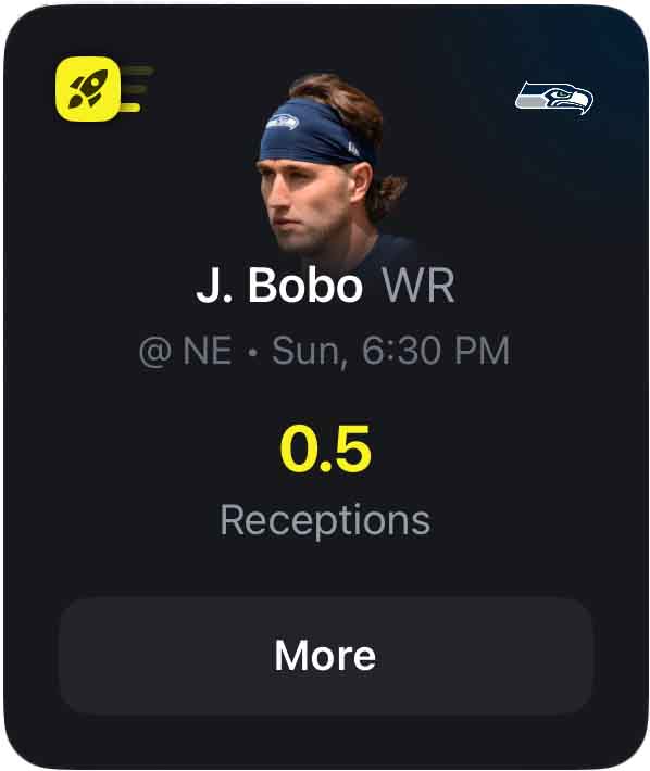 Despite only having two regular-season targets, Bobo has seen three in the postseason, including a 17-yard touchdown last week. He's become a specialized weapon in Mike Macdonald's scripted "big game" plays.