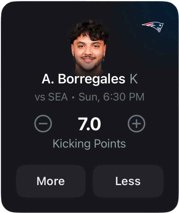 The rookie standout made multiple field goals in nine games and earned AFC Special Teams Player of the Week. Against a Seattle red-zone defense that ranked 4th-toughest this year, the Patriots will rely on Borregales to keep the score within reach.
