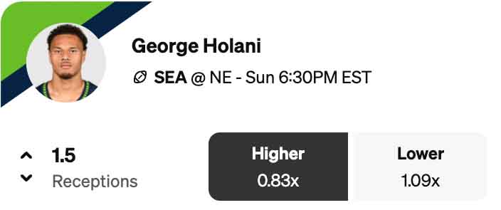 With Zach Charbonnet officially out with a torn ACL, Holani has been activated from IR to serve as the primary receiving back. He saw three targets in the NFC Championship and should be on the field for almost all passing downs.